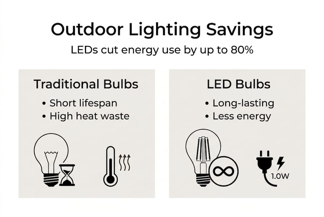 How much can I save by switching to energy-efficient outdoor lighting?
